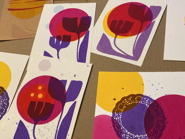 In entspannter Atelieratmosphäre gestaltest du unter der Anleitung von Dr. Gwendolyn Isabel Rabenstein deine eigenen kleinen Serigrafien – leicht, lebendig und voller Sommerenergie.